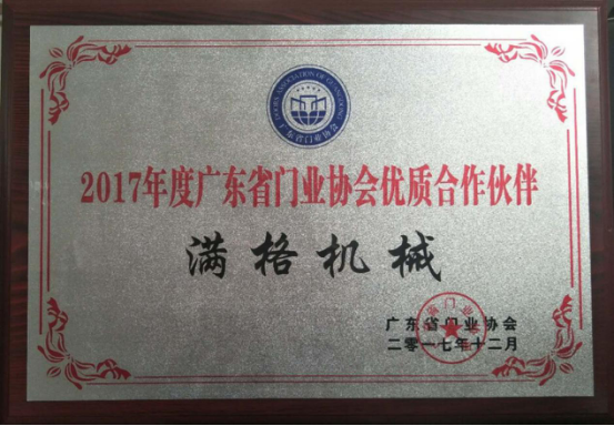 | 滿格機械榮獲廣東省門業(yè)協(xié)會“2017年度優(yōu)質(zhì)合作伙伴”殊榮 | ||||