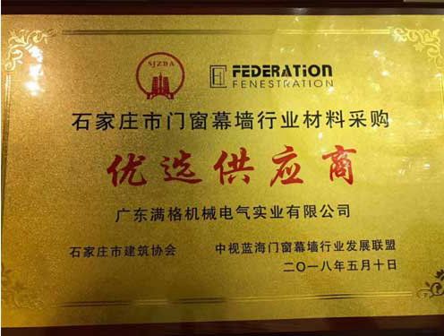 Full machinery was rated as "Windows and doors curtain wall industry material purchasing preferred supplier", is both the full machinery always adhere to the "to the quality strives for the survival, to management for development" of the concept of enterprise development and also to fill in the field of Windows and doors curtain wall on improving quality, must pay attention to innovation, will further promote full visibility and reputation in the market. Mange machinery will continue to carry forward the spirit of "pioneering and enterprising, climbing the peak", with quality products, professional services to return to the majority of customers, let life because mange beautiful!