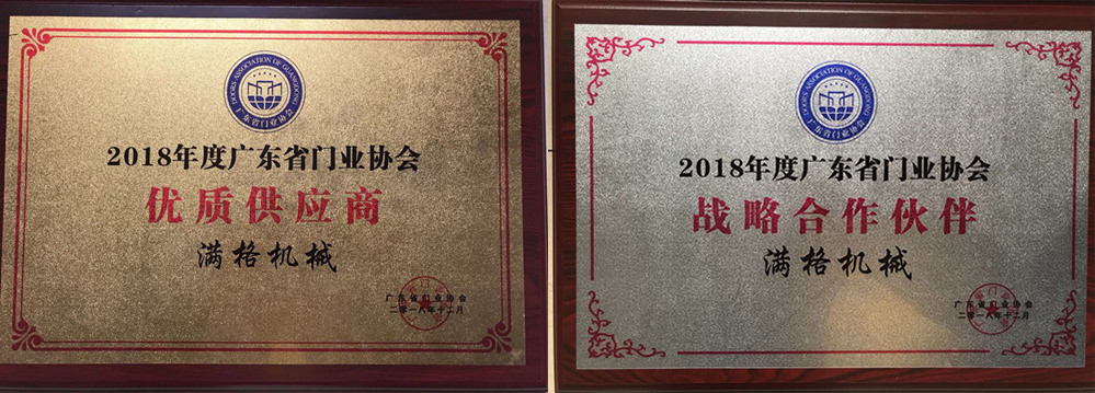 | Big news! Mange machinery won the title of "quality supplier" and "strategic partner" of guangdong door industry association in 2018. | ||||