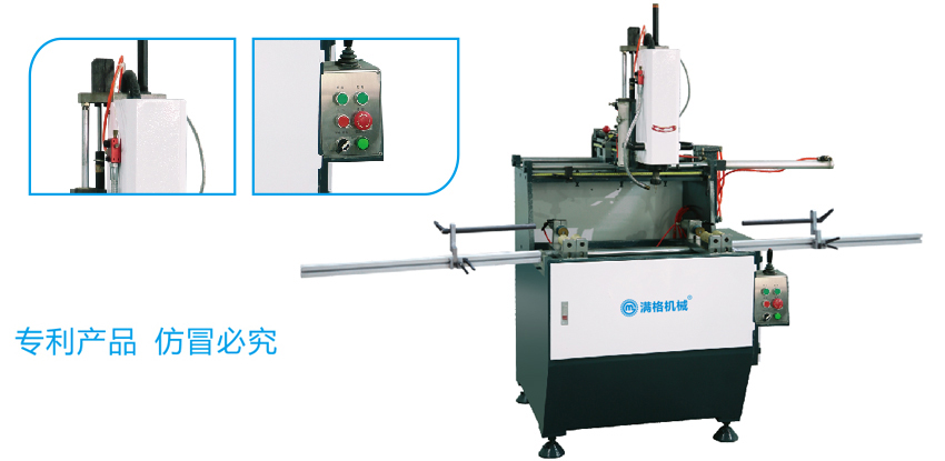 Put two 45° aluminum alloy window profile in machine, utilize corner connector in the profile, then ...
