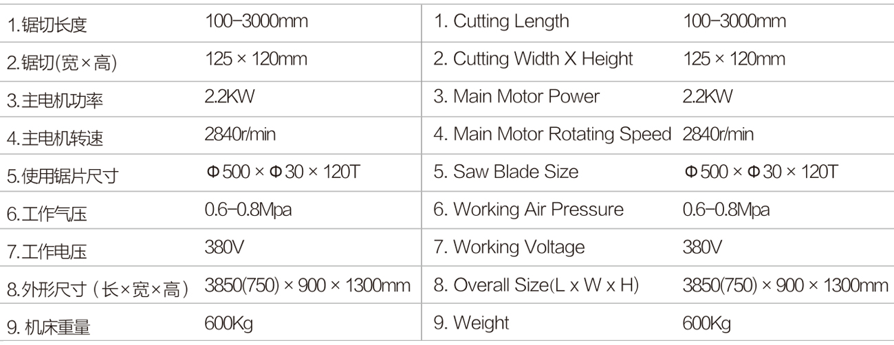 Mainly application to cut aluminum alloy profile, also can cut plastic profile. High quality carbide saw blade gives accurate processing and high endurance, the max. outside diameter can up to 16’’, high linear speed, high precision machining. It is equiped dimension positioning rack, and can add up the digital display device as per customer requirements, therefore, the positioning is accurate. The workbench can be rotated in angle of (-15°)-90°-(+15°), after the backup plate is moved backward, the workbench can be set at 0 degree, and the saw blade can be raised and fixed for slot sawing. Therefore, it is especially suitable for aluminum alloy profile cutting at different angles.