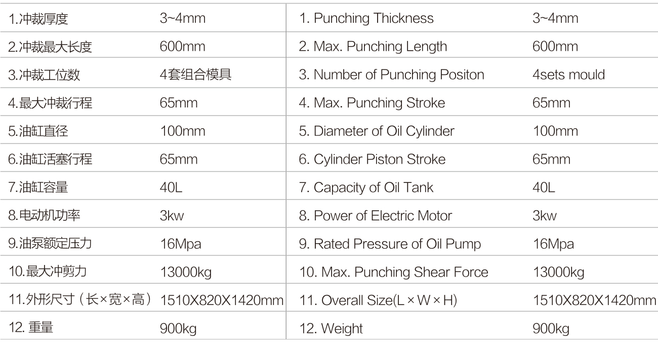Various kinds of aluminum profile combined mould are installed on the table of the punching machine, which can complete the punching processing of all holes and notches of various corresponding push and pull windows or flat window aluminum alloy profiles. The machine is quick and simple to replace the combined modle, and it is the ideal equipment for aluminum window profile processing.