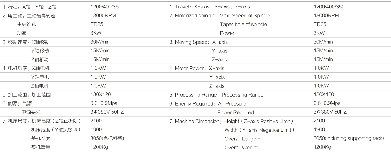 The equipment is a set of milling, drilling, chamfering as one of the three axis profile composite processing center, suitable for various lengths of copper, aluminum and other metal processing. Germany PA system is adopted, the whole machine has stable performance, simple programming function, easy to operate and learn. Italian imported motorized spindle ensures the stability of machining, suitable for medium and light cutting.Adopt spray cooling system, which has good cooling ability to the cutting tool and workpiece; Iso30-8t row knife library is adopted to realize the function of automatic knife change. Use a drawer type chip collecting basin to facilitate the collection of processed chips. Adopt protective sheet metal cover in processing area to ensure the safety and environmental sanitation of the operator. Rigid tapping and information docking functions can be added according to the customer's product processing requirements (optional). Models of different specifications can be customized according to the length of the workpiece (X-axis stroke :1.5-20 meters).