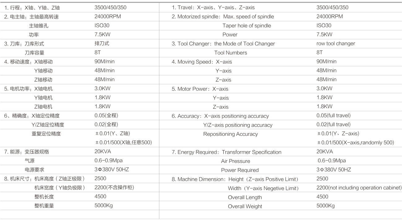 5.采用ISO30-8T排式刀庫,可實(shí)現(xiàn)自動(dòng)換刀功能。