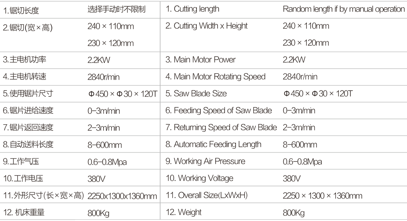 1,主要用于鋁合金型材的切割下料,也可用于塑料型材的切割下料,配備專用模具,特別	適合用于角碼自動(dòng)下料。使用硬質(zhì)合金鋸片,外徑可達(dá)20″。線速度高,加工精度高。