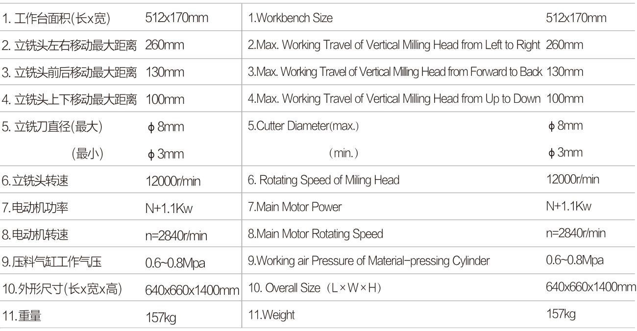 1,可將復(fù)雜孔形復(fù)制到工件上。調(diào)整好立銑頭左側(cè)的擋塊和仿形支架上的定位條,可銑削	矩形孔。各種動力均在直線運動軸上運動,仿形針可以自由轉(zhuǎn)動,因而操作自如,輕便靈活。